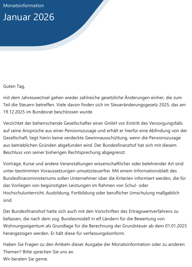 Neues aus dem Steuerrecht